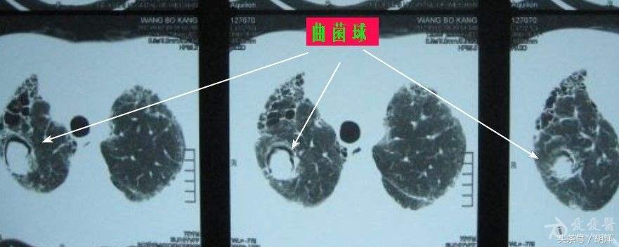 曲霉菌是一种常见的真菌,正常情况下,曲菌很少感染肺部结构正常,免疫力良好的人群,当肺部受到破坏,特别是形成较大空洞和支气管扩张时,曲霉菌可以趁机进入空洞扩张的支气管内与其中渗出的白细胞、纤维素等成分形成球状结构,成为曲菌球,曲菌球在空洞内能够自由的活动,对空洞壁有机械性的损伤,当损伤到管壁变异的血管瘤时,极有可能导致大出血。